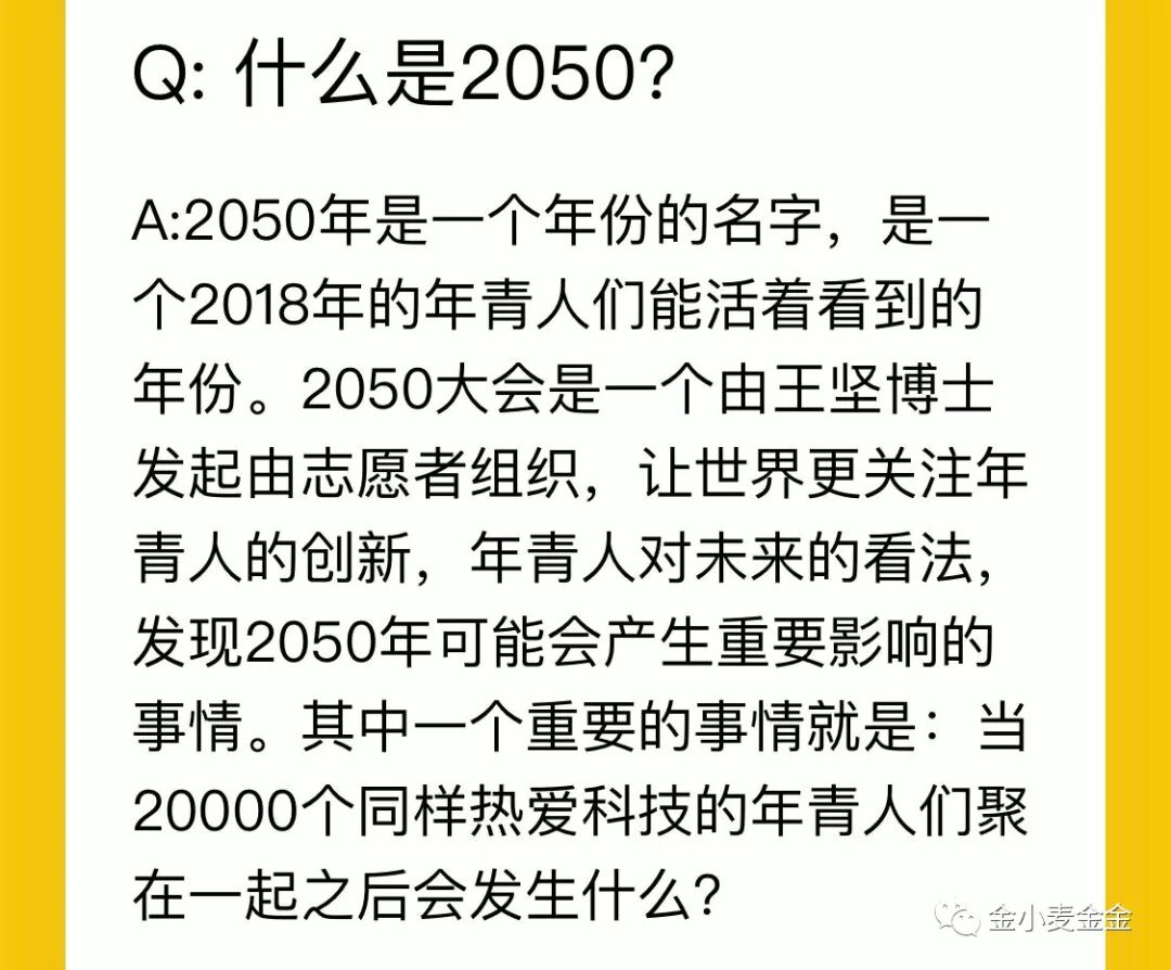 好吧。这个礼拜就是2050。好多朋友看到我朋友圈发,就问我:2050是什么?